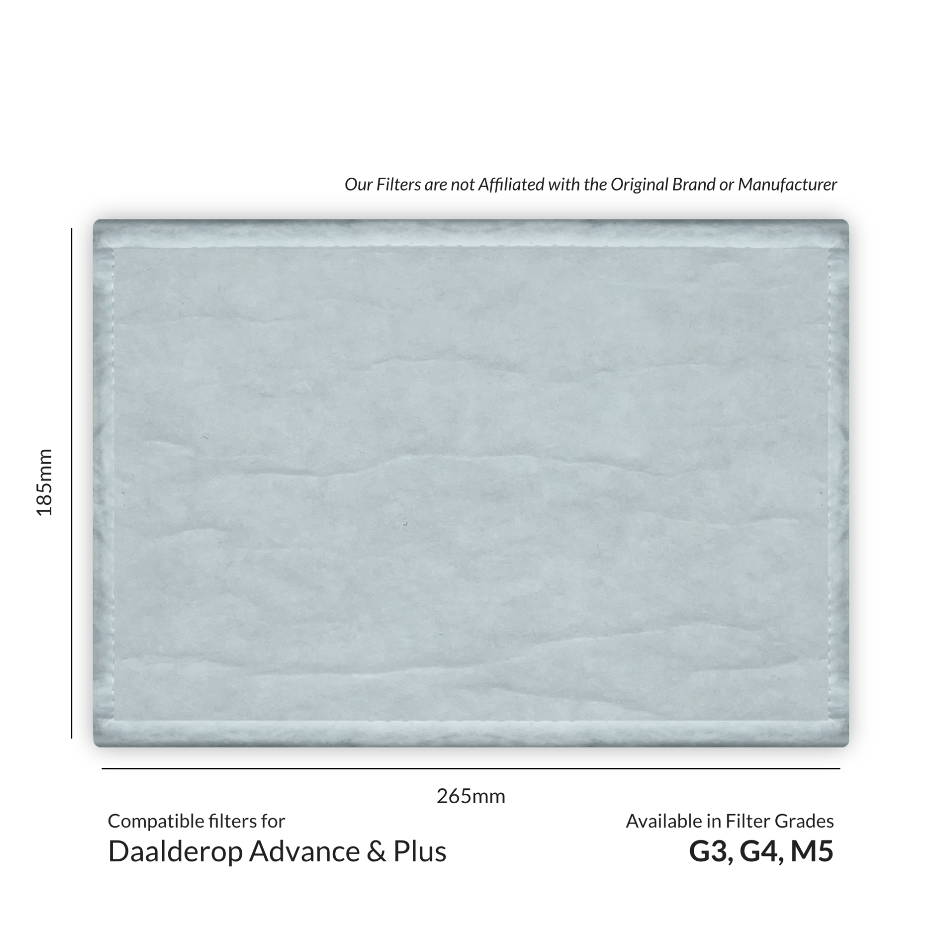 Itho Daalderop Advance & Plus Compatible Replacement MVHR Filters from MVHR.shop are 185mm x 265mm.