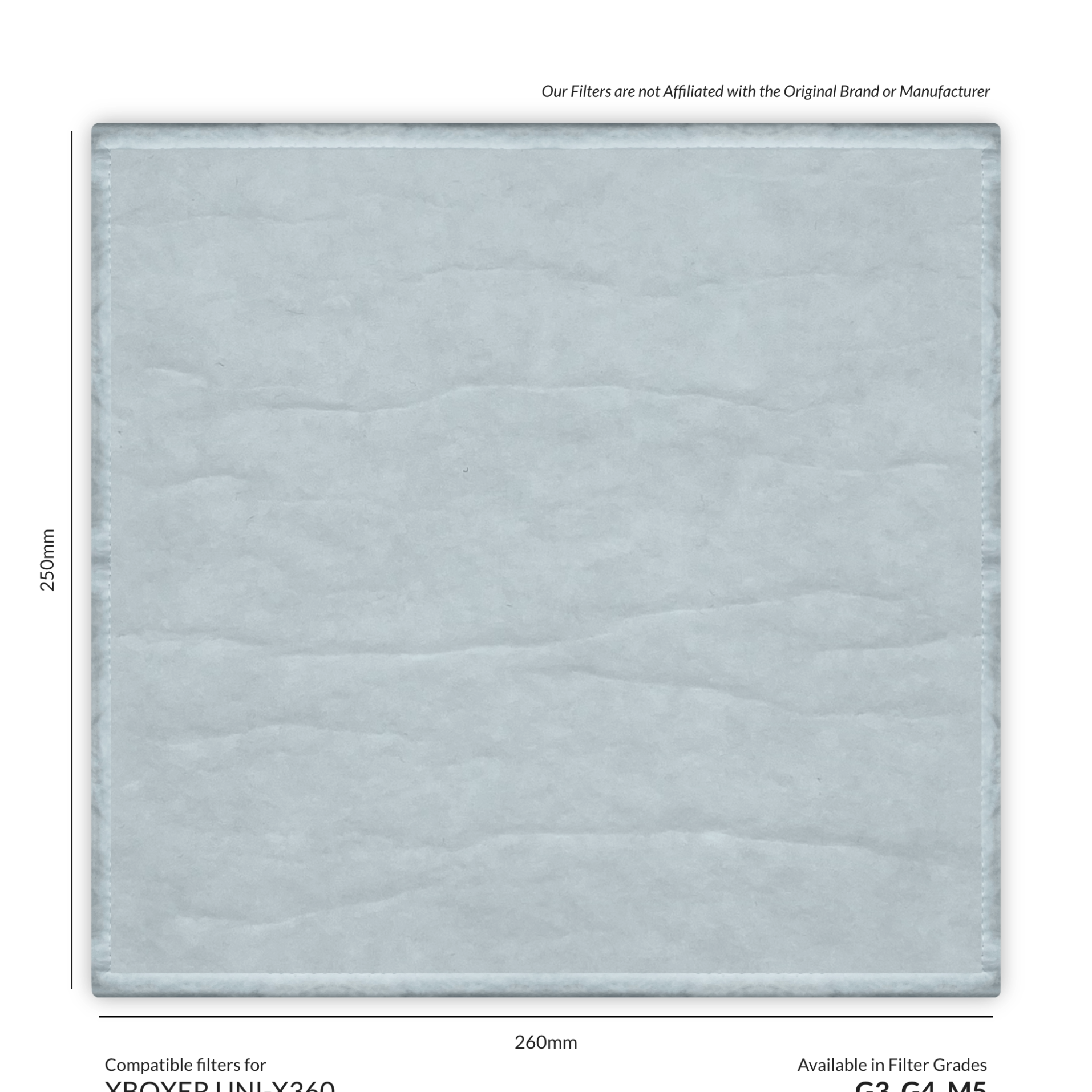 Nuaire XBOXER UNI-X360 Compatible Replacement MVHR Filters from MVHR.shop are 260mm x 250mm.
