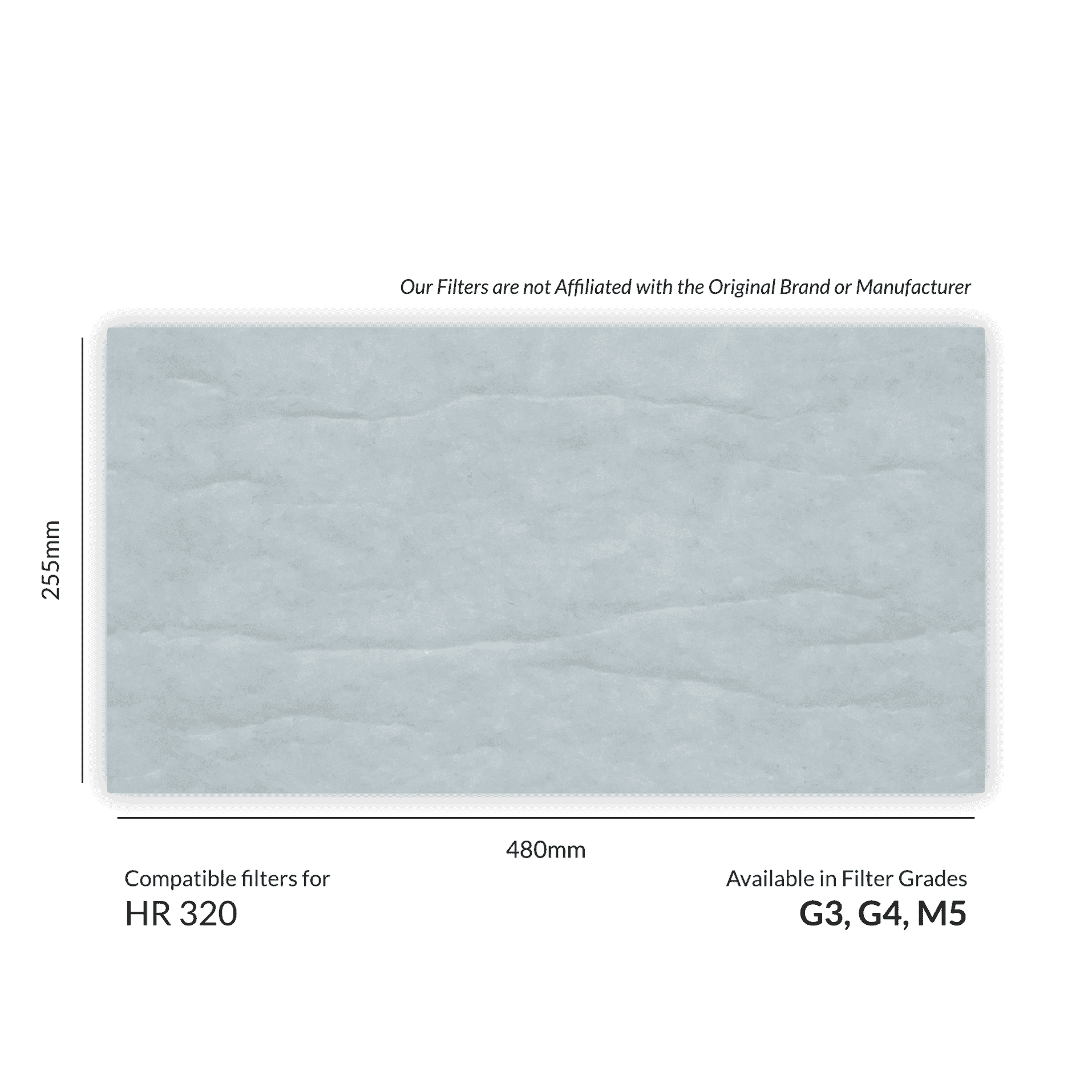 Vent-Axia HR 320 Compatible Replacement MVHR Filters from MVHR.shop are 480mm x 255mm.