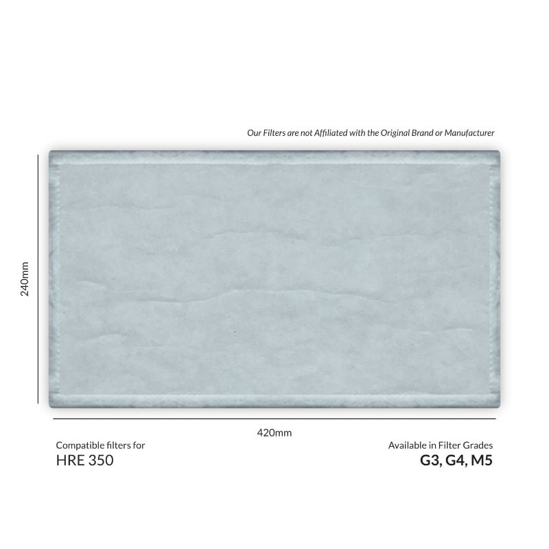 Vent-Axia HRE 350 Compatible Replacement MVHR Filters from MVHR.shop are 240mm x 420mm.