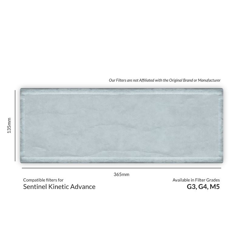 Vent-Axia Sentinel Kinetic Advance Compatible Replacement MVHR Filters from MVHR.shop are 135mm x 365mm.