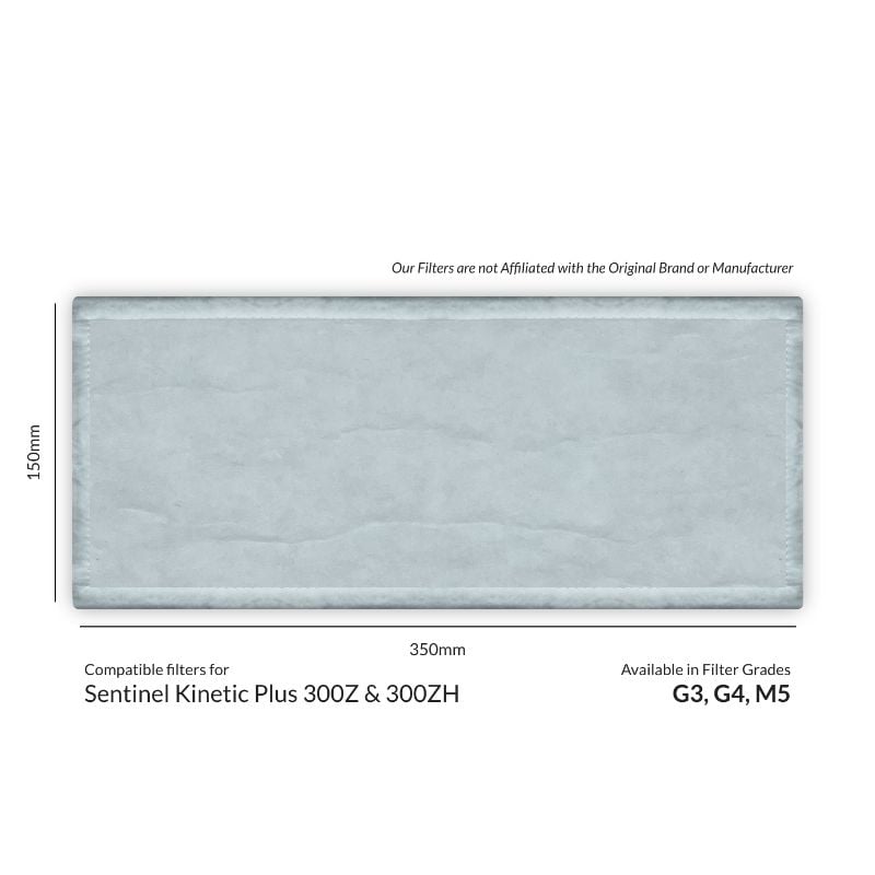 Vent-Axia Sentinel Kinetic Plus 300Z & 300ZH Compatible Replacement MVHR Filters from MVHR.shop are 340mm x 145mm.